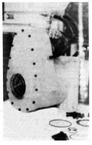 A second model is available for cornbines where it's not possible to get clear access to the end of a feeder shaft. It has the same hydraulic clutch but no internal gears or chains. All reduction is done externally. Amount of torque depends on size of drive sprocket. Grose has mounts to adapt it to all Case/IH combines, most Massey combines including new rotaries, the 9700 White rotary, most Deere combines, and most Gleaner models. Other models can be custom-fit. Sells for $1,500.
