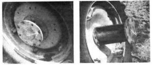 He used heavy plate steel to make the spacers. The spacer on the tractor wheel protrudes just 2 112 in. so it's inside the edge of the tire. That way the hub is out of the way when duals aren't needed.