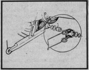 To install on Deere tractors (row model 2950 and smaller) remove the collar on the end of the draft sensing shaft and install the new collar. Next, slip the spring holder, washer and snap ring on the bushing.
