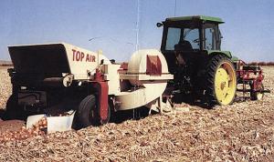 Mechanical Onion "Topper" MISCELLANEOUS EQUIPMENT Miscellaneous 22-2-35 Our mechanical onion "topper" isn't the only one on the market, but we think it's the best. Traditionally, taking the 18-in. tops off onions is done manually, a slow and labor-intensive task. Even our smallest machine, a 4-row unit, will save an estimated $4,000 per year in labor costs on average size operations. We're figuring $400 an acre labor, and the machine will do 10 acres a day.