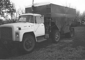 The Raymond, S. Dak., farmer bought a Killbros 550-bu. gravity wagon with center dump for the project. He cut the box off the frame and running gear and bolted it on back of the 1978 International 1850 truck equipped with a 466 cu. in. diesel engine he also bought for the project.