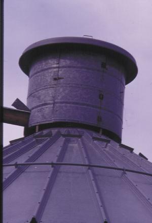 To top off the headhouse, Young attached a bin cap that was one size too big for the bin. It's about 4 in. in dia. larger than the hog feeder to shed water and is raised slightly to allow air to escape freely when the dryer is running.