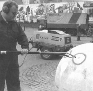 When the trigger is pulled, air is supplied to a piston which ejects air at very high pressure from the nozzle at the end of the wand. The unit is self-priming so by hooking up a hose you can suck water directly from a bucket or tank. It requires far less water than conventional high pressure cleaners. For cleaning greasy surfaces it's recommended that a cleaning agent be applied first.