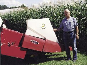 GVL of Litchfield, Minn., which makes poly corn head snouts, recently signed a 5-year agreement with me to manufacture and distribute the shields. Three models will be avail-able to fit virtually any corn head. The photo (that's me with the shields) shows the patented poly dividers that fit Deere, Case-IH and GVL headers. They sell for $219 for heads fitted with GVL poly gathering shields and $199 for heads with factory metal shields. You can reach GVL at 59711 Highway 12 West, Litchfield, Minn. 55355; ph toll-free 888 485-8411 or 320 693-8411. (Herald Barton, 19052 Kale Ave., Silver Lake, Minn. 55381; ph 612 327-2217)