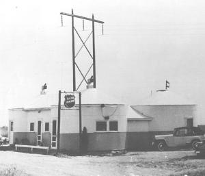 "The original establishment was built out of two wooden 24-ft. dia. grain bins. It sat 55 or 60 people, whereas the new restaurant seats about 175," says kitchen manager Jim Riley. "The bins are joined by a 22 by 36-ft. lounge in the middle and the kitchen is at the rear. Curtains in both the lounge and dining areas are seed sacks."