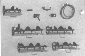 The Wheatheart "In-Bin Super Sweep's" 8-in. dia. auger sections are assembled by locking short stub shafts together. Each section rides on a small steel wheel at one end and is fitted with a backboard that scrapes the bin floor clean. The standard kit comes with 11 1/2 ft. of flighting which is enough for a 24-ft. dia. bin. By adding more sections you can make the auger fit bigger bins. An in-bin pivot assembly allows the auger to be adjusted up to 10 in. to make it fit any bin. A safety shut-off valve automatically shuts the auger off if anything gets tangled in it.