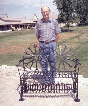 Paul Ezra, Winamac, Ind., recently used 100 old wrenches to weld up this settee he made just for fun. He's since made a chair and coffee table out of old wrenches, too.Contact: FARM SHOW Followup, Paul Ezra, 9341 S St. Rd. 39, Winamac, Ind. 46996 (ph 219 278-7219)...........