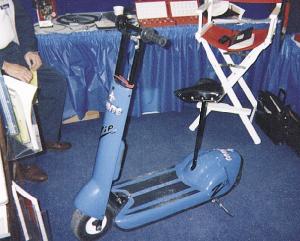 Our new electric scooter is smaller and weighs much less than other electric scooters on the market. The 40-in. long rig rides on two 9-in. high, 3 1/2-in. wide pneumatic wheels and weighs only 66 lbs. with a built-in 12-volt battery. The battery belt-drives the rear wheel and comes with a built-in charger. There are o
