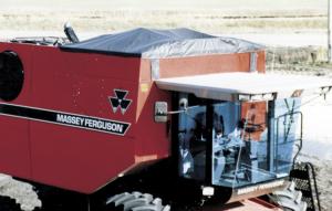 Signature Seat Cover of Elm Creek, Manitoba, custom sews tarp covers to fit grain tanks on all makes and models of combines. They allow you to leave your combine in the field overnight without fear of rain. They also eliminate time spent cleaning wet grain out of the hoppers and they reduce grain loss since they can be left on while harvesting so grain can't blow out.