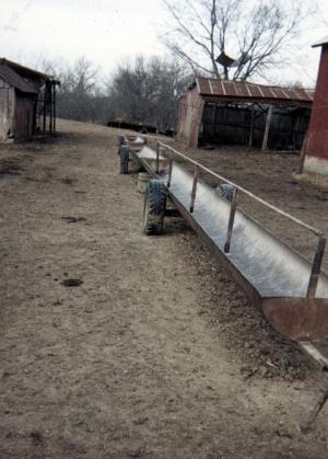 He Makes Clear Span Metal Storage Sheds BUILDINGS New Techniques 24-4-36 We make portable bunk feeders, some of them up to 30 ft. long, by cutting 24-in. dia., 15-ft. long pipes in half and then welding them together end to end. The bunks mount on old car wheels and axles. We can easily pull 100 ft. of bunks around with a 3-wheeler ATV. The bunks don't weigh much and handle nice because the wheels are positioned at the center and all follow in the same tracks. A steel rod above the center of the bunks keeps cattle out.