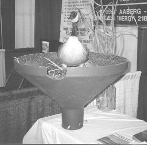 Dave Silewski, Dakota Nesting Structures, Valley City, N. Dak., offers several different models. His goose baskets are 30 in. in diameter, have 8-in. sidewalls, and weigh about 16 lbs. apiece. The basket mounts on top of a 2-in. dia. steel pipe and is elevated 3 to 8 ft. above the water. Silewski recommends filling the basket with flax straw or some other thin-stemmed straw that's resistant to mold. Hatchlings are able to bail out through a 6-in. hole in the side, and water can escape through small drain holes at the bottom.