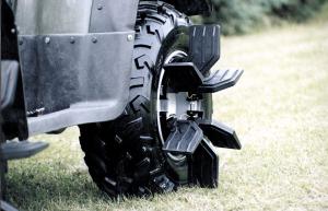 According to Hubscher, the paddles are flexible enough to bend when they hit trees or rocks. "If a paddle ever needs to be replaced you can remove the pin that holds it on and quickly replace it. The paddles don't affect the way the ATV handles in dry conditions because they never touch the ground," he says.