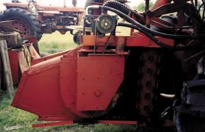 The only moving parts in Thompson and Bell's header are a centrifugal fan and a rotating drum that extracts cotton from the boll.