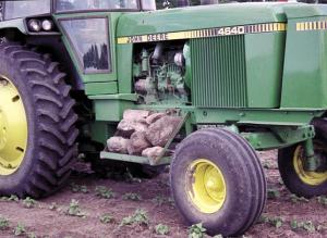 Another idea I had was to make a rock box that bolts onto the side of my Deere 4640 2-WD row crop tractor. The box measures 28 by 24 in. The bottom is made from cylinder bars off an old combine while the sides are made from angle iron. Everything is welded together. It really comes in handy for picking up small rocks as I cultivate edible beans and soybeans. I dump the rocks at the end of the field or in a shelter belt. I also made a similar box that bolts to the frame of my Deere 8430 4-WD tractor.