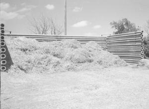 "After a tornado ruined our center pivot, we salvaged as many pipes as we could to make a holding bin for ground hay.