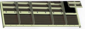 The patent-pending chaffer sends a thin layer of high velocity air out across the chaffer, moving chaff rearward. Grain falls through the streaming air. The screens face toward oncoming grain for faster separation.