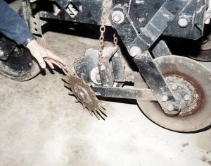 "It keeps bean stubble from wrapping up because there's nothing for it to catch on," says Richard. "The disc opener is the same size as the finger wheel opener so it bolts on with no modification."