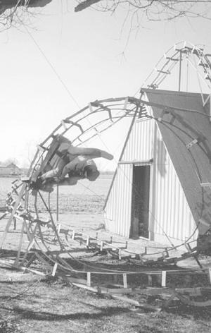 Not too many people know how to have fun like John Ivers of Vincennes, Ind., who built a roller coaster in his own back yard. It measures 180 ft. long, 20 ft. high, and goes up and over the barn behind his home.