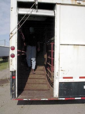 Cattle and even baby calves can step into Frank's remodeled straight trailer from ground level, without aid of a chute or even a step.