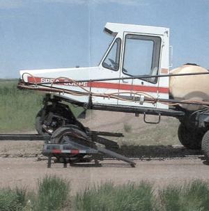 I own a pair of Melroe Spra-Coupe self-propelled sprayers and have farms spread out about 40 miles apart. To reduce time spent on the road, I built a "drive-on" trailer equipped with built-in loading ramps that tip up as you drive on.