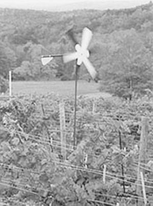 The manufacturer suggests mounting the windmill on a simple 10-ft. pole made from 1/2-in. dia. pipe. The spinning blades repel birds on up to a 2-acre area, says the company. It's said to be effective for birds in fruit trees, vegetable crops, blueberries, and even Canada geese in grain crops.