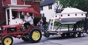 Satellite Dishes Turned Into A Flying Saucer WAGONS/TRAILERS Miscellaneous 26-6-34 I turned a pair of satellite dishes into a flying saucer with flashing lights on top and a rotating orange light inside that flashes through the holes in the disks. It is stored on my lawn and is a great conversation piece. I also mounted it on a small tractor and pull it in parades with my grandchildren who wear green hats and faces painted green to look like Martians. It's a great crowd pleaser. (Jim Heaslip, RR2, Hagersville, Ontario N0A 1H0 Canada)