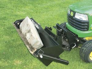 Figuring there had to be a better way, he went looking for a front-end loader or scoop to mount on his Deere X475 lawn tractor.