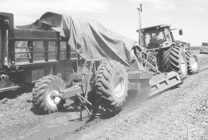 Last year John Miller, Catlin, Ill., used his 8-ft. Liebrecht rotary ditcher to clean out road ditches that had filled up with soil from nearby fields. He loaded the soil into tandem axle trucks.