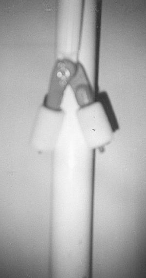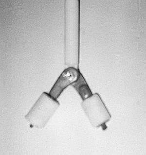 It consists of a pair of 2-in. wide rollers mounted on a V-shaped plastic bracket that's fastened by a thumb screw onto the end of an 8-ft. long plastic pole. The operator simply pushes the angled rollers up and down the pipe. The thumb screw is loosened to adjust the distance between the rollers.