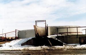 Highland Feeders uses one of their concrete tubs for a loading/unloading facility outdoors, while the other one is housed inside separate "animal health unit" barns scattered throughout the feedlot. This is where stock is vaccinated and health problems are treated. Both concrete tubs are the same size.