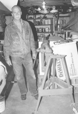 John Bues-inger, Taylor-ville, Ill. (ph 217 824-5794): "I built a tripod base for an old bench vise grip. Unlike a 4-legged stand, the 3-legged base always finds solid footing. "The portable vise can be moved easily to the job."..........