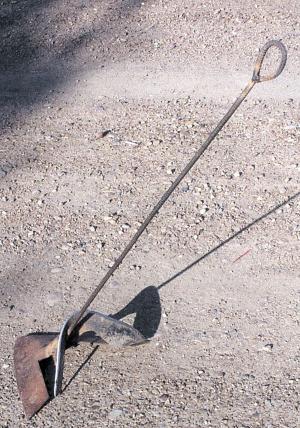 You simply weld together two worn out sweeps, putting the mounting shanks together, and then weld on a 3 to 4-ft. length of concrete re-bar or other metal rod. I prefer re-bar because it's easy to bend into a loop at the end for fastening wire from it to the post.