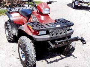 "It's a simple idea but it really comes in handy," says Brule. "I'm usually alone in my fields which are scattered out, so I use it all the time. I've even pulled it behind my pickup at speeds up to 55 mph. When I get to the field I drop off the equipment and ride the ATV back home to get whatever else I need. The hitch detaches in just a few seconds. I bought about $40 worth of steel to put it together. I pull my drill lengthwise down the road. The markers on my grain drill stick out kind of far, but the hitch on the ATV telescopes so there's plenty of clearance."