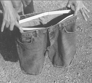Chuck Marley, having no hips, constantly was having a hard time keeping his shorts in place. His wife, Anita, intervened and suggested tacking in some elastic band. It worked. The 1-in. wide elastic band is tacked on in front and back and on both the left and right hips.