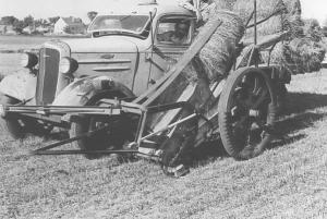 Years ago we made our own truck-mounted bale loader out of a Dowden potato digger. It worked equally well with small round or square bales. Bales were delivered up a chain-driven conveyor and onto a wooden platform, where a worker would load them into the truck bed. The biggest problem was we could only load the one tr..........