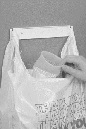 The Plastic Bag Hanger, created by Roger Stein, Fargo, N.Dak., makes it easy to hang up bags anywhere to hold trash. The plastic bar is 9 by 1 1/2 in.