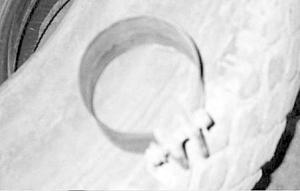Karl Oysmueller, Pink Mountain, B.C.:   "When installing pistons on air compressors or small engines, I would sometimes break the rings since I don't have the special pliers needed to compress them. I've eliminated the problem by first wrapping the piston in a piece of smooth tin that's the same height as the piston, but leaving two æears' on the ends so I can tighten the tin up like a clamp around the piston with vise grips to compress the rings. Then I just tape the piston down into the cylinder. Works slick.