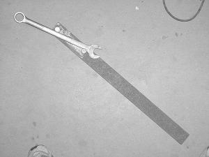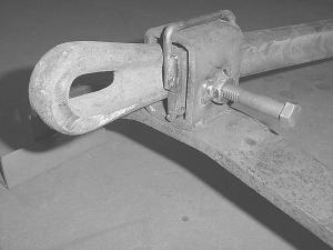 Urka's solution was to take a 14-in. long piece of 2-in. steel bar and tap two 1/2-in. holes through it near one end.