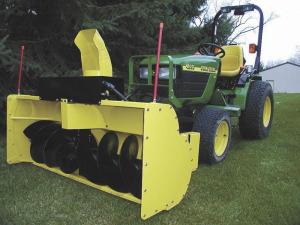 "Deere sells a similar front-mount blower but theirs is only 47 in. wide and it's 2-stage with a high-speed impeller that would wear out fast when picking up stones off the driveway. Also, Deere's blower sells for about $2,600. Mine cost about $850 in materials.