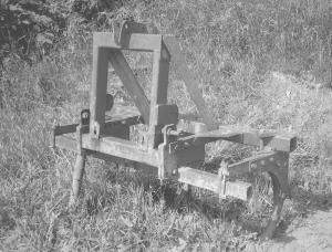 He and his son Robin made the 3-pt. hitch implement from an old International trip beam plow. They pull it with a 100 hp tractor. The unit rips and mixes the subsoil 10 to 14-in. deep with its three shanks, and Leifso points out that a fourth shank is optional.