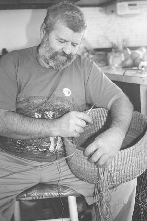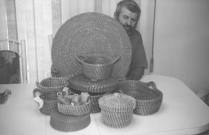 The only expense Kuhmayer has is buying new twine for the stitching. He makes all sizes of both baskets and mats, and sells them at farmers' markets in the region.