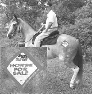 The "Rump Sign" is a durable vinyl self-adhesive "for sale" sign that sticks to your horse's hind quarters and turns him into a walking advertisement.