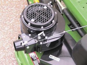 The company also recently introduced a blower that mounts on the deck of any riding mower. The blower fits on the same mounting bracket that the mower-trimmer fits on and is also belt-driven. The operator adjusts the angle of air discharge from the seat with the use of a control cable.
