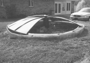 "The dish is set on a ring of concrete which has a barrier of foil-backed insulation both inside and outside. The poly on the dish has an R value of 2.