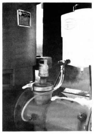 The "Drip-Well" oiler consists of a spring-loaded check valve that mounts on the oil reservoir tank. It's controlled by a water line that runs to the pump. Just 10 psi opens the valve, starting the flow of oil. When the pump shuts down, the valve closes, too.