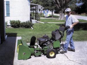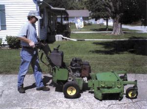 To solve the problem, he converted a Deere walk-behind mower into a power unit that's designed to quick-tach to a variety of implements. The original belt-driven power system was converted to pto drive, and he added quick-tach brackets that let him switch attachments with no tools.