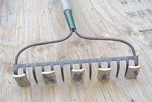 Cleaning up spilled or dropped nails is a common use. Company personnel describe attaching magnets to rake fingers as a great way to sweep through gravel to get any fallen nails. As nails gather, simply rub them off into a pail.