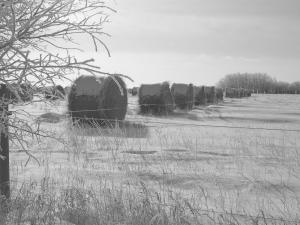 In two days the cattle clean up all the hay. When it's very cold, Boyd moves the fence more often.
