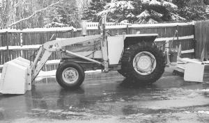 Joe Germuga of Rochester, N.Y., converted a used 1978 Ford 3550 industrial loader tractor into a snow-moving machine with a big bucket and a 3-pt. mounted blade on back.