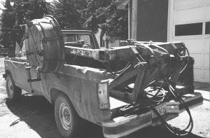 When Fred Davison needs to roll up barbed wire, he hops in his old pickup, flips a toggle switch and starts driving. The wire wraps around a hydraulic-powered spinning tractor tire rim that spins on the arm of an old Dew Eze hydraulic bale handler.